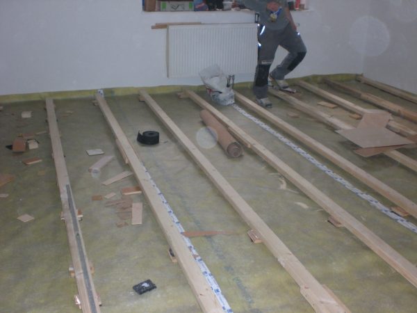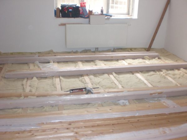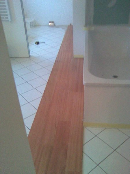 LERCHE SCHIFFBODEN AUF POLSTERHÖLZER VERLEGT