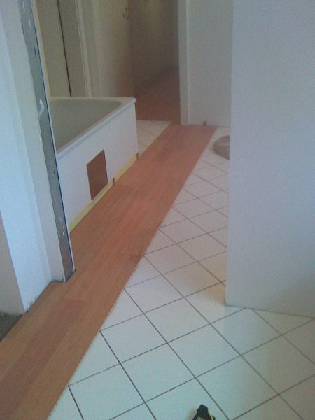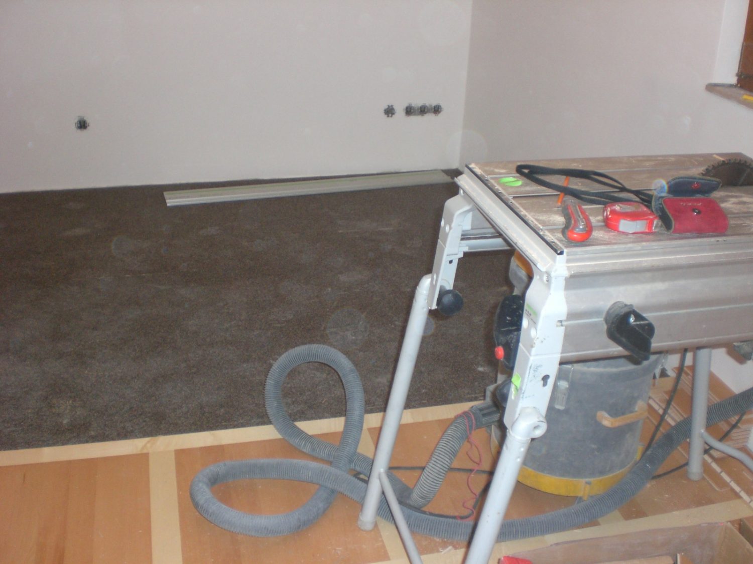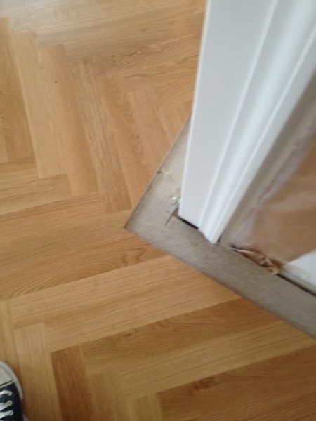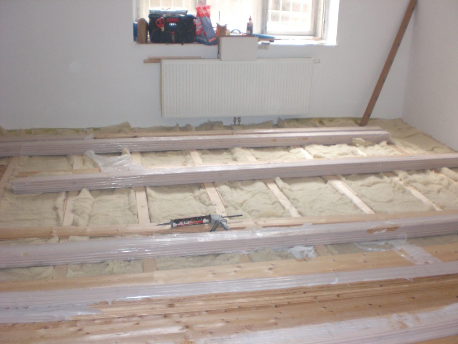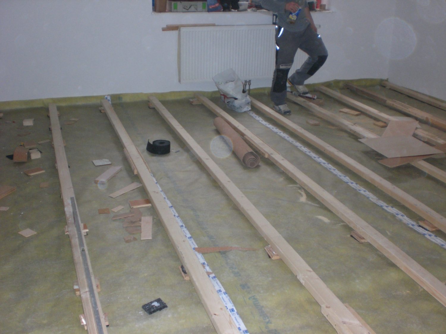 In diesem Wochenendhaus haben wir die Dampfbremse fachgerecht verlegt, die Stösse auch zu Abschlussschienen verklebt. Fertigparkett verlegt und Sockelleisten angebracht.