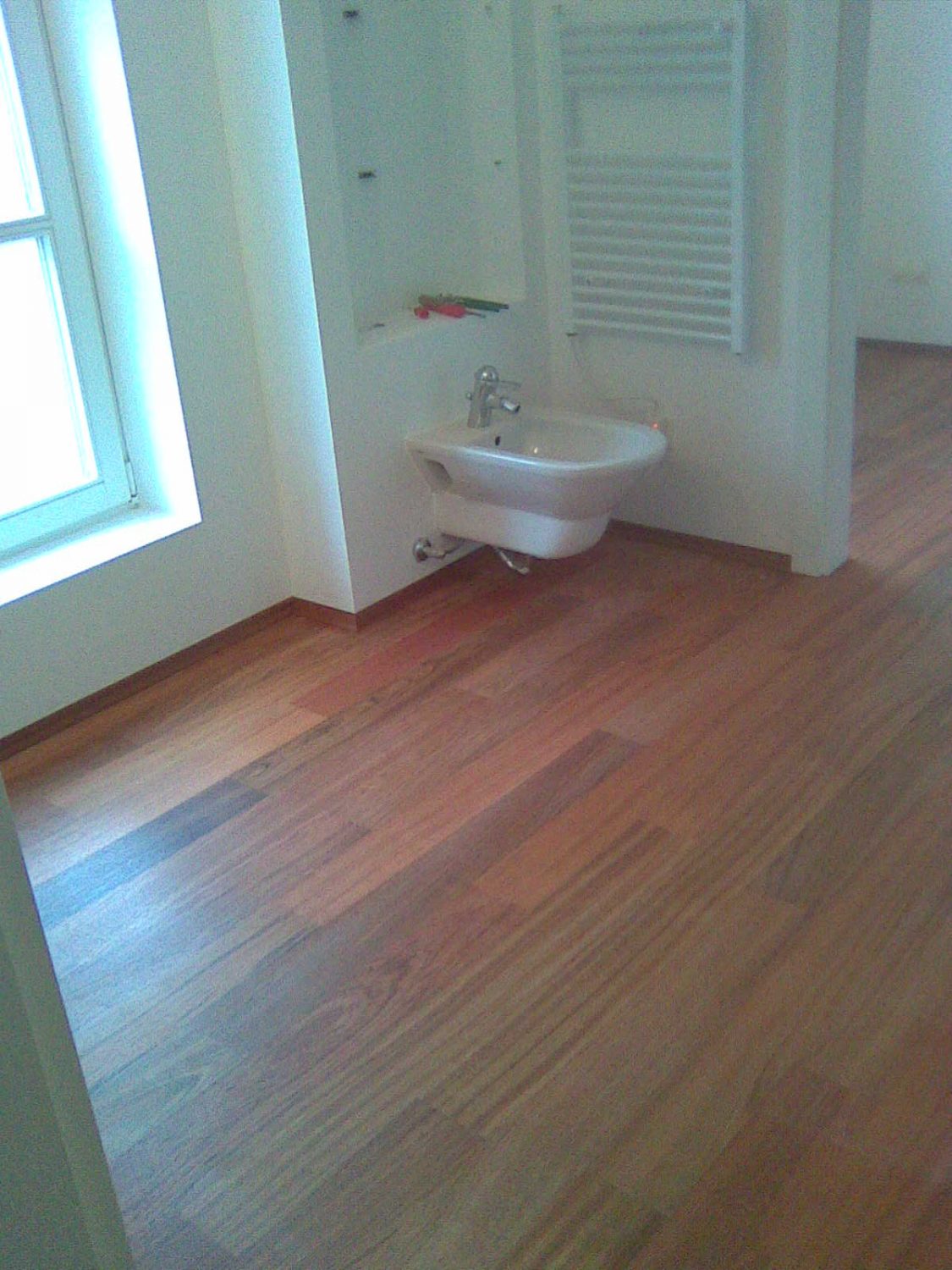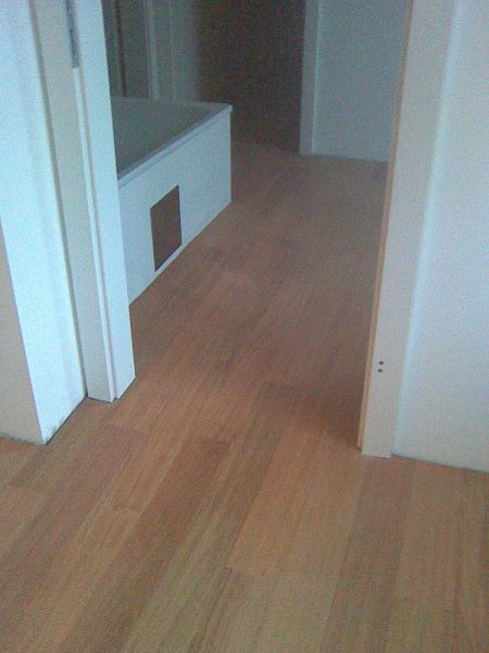 Vollflächig verklebt verlegt, geschliffen und versiegelt.