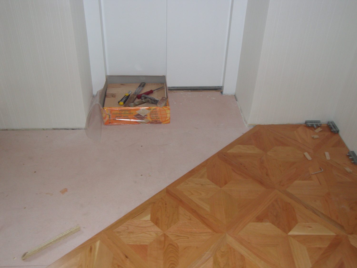 STABPARKETT ENTFERNT, SORTIERT, ENTNAGELT, GEREINIGT, VERLEGT